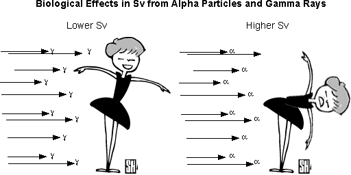 - Although the amount of energy absorbed may be equivalent, the biological effect of different particles can be very different. That is why we need a different measurement of "dosage", one that will make it easier to compare different exposures to radiation.