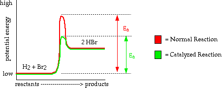- A catalyst works by lowering the activation energy necessary to